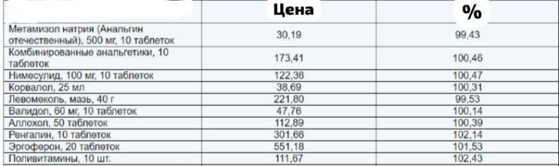 Есть в группе наблюдаемых медикаментов и препараты, цены на которые снизились: метамизол натрия – на 0,6%, левомеколь – на 0,5%.