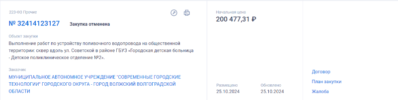 В Волжском планировали устроить поливочный водопровод в сквере на улице Советской. Соответствующий аукцион был размещен на сайте Госзакупок в конце октября 2024 года.