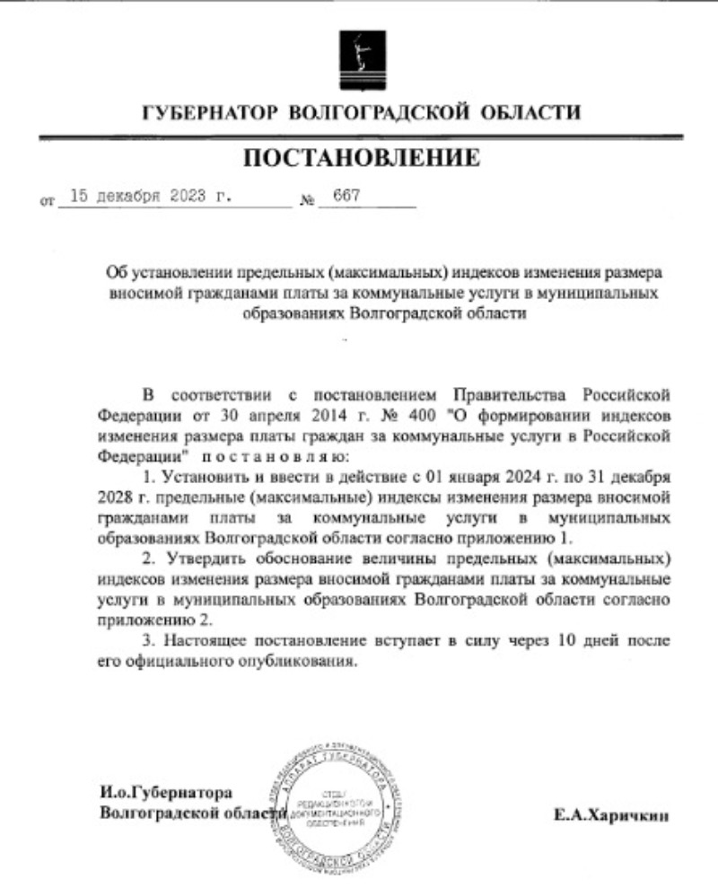 Однако уже сейчас можно сказать, что в среднем изменение платы за коммунальные услуги с 1 июля 2024 года составит от минимально возможных решением Правительства РФ 9,8% до 11,2%, то есть максимального предела в 11,8% не будет ни в одном поселении Волгоградской области, – пояснила руководитель ведомства.