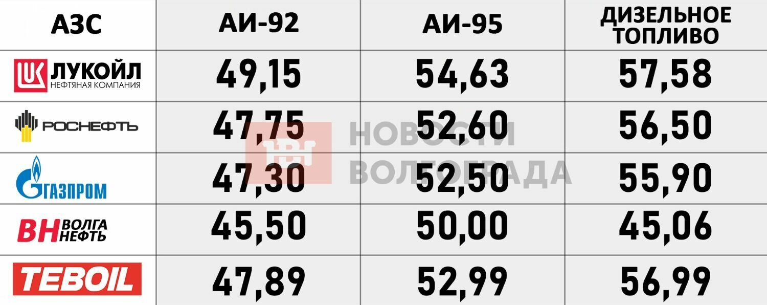 — Недавно таксист мне рассказывал, как он заправился где-то в гаражах на улице Пушкина в Волжском, а потом пожалел, увидев, как машина себя ведёт, — сообщил изданию «НовостиВолгограда.ру» волгоградский общественник Алексей Ульянов . — Было бы логично проверить эту «АЗС» со стороны госорганов.Действительно, в погоне за дешевизной некоторые водители заправляют свои автомобили на сомнительных АЗС. В то время, как все заправочные станции крупных ВИНК следят за качеством топлива. Отметим также, что в нашем обзоре мы использовали только заявляемые компаниями цены. Но при этом практически у каждого бренда есть свои акции и накопительные системы. К примеру, сейчас практически все они дают скидку 2 или 3 рубля с каждого литра, при единоразовой покупке топлива от 30 литров. Есть вариант «залить скидку в бак». А на некоторых АЗС дают скидку в 1 рубль с каждого литра при заказе чашки кофе.