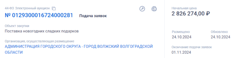 В Волжском начали закупаться к грядущему Новому году. На конфеты для детей выделили первую крупную сумму - администрация города планирует купить более двух тысяч сладких подарков общей стоимостью в 2,8 миллионов рублей.