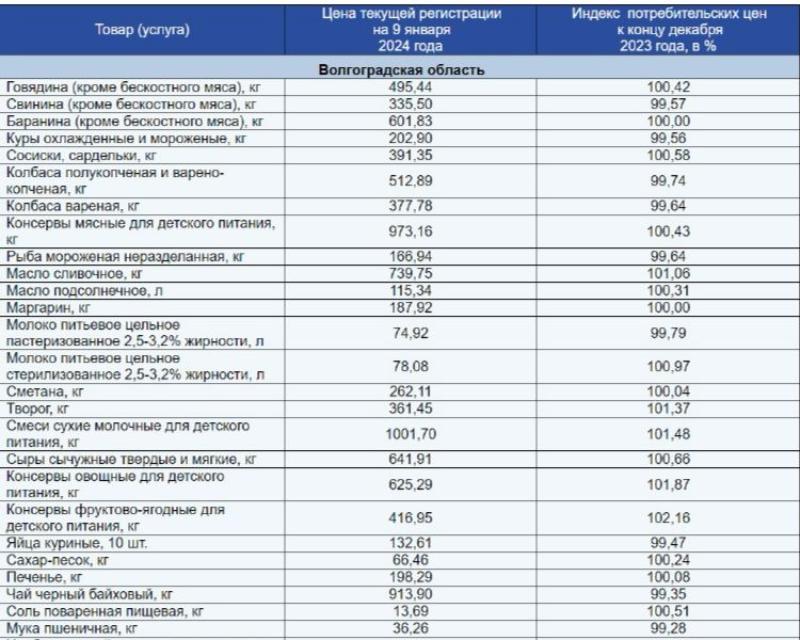 Волгоградские специалисты территориального органа статистики опубликовали данные по изменению цен на продуты за первую неделю января 2024 года.