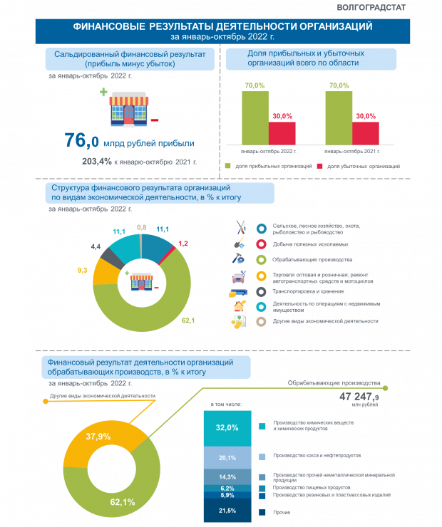 Волгоградстат опубликовал данные о результатах деятельности организаций региона за январь-октябрь прошлого года.
