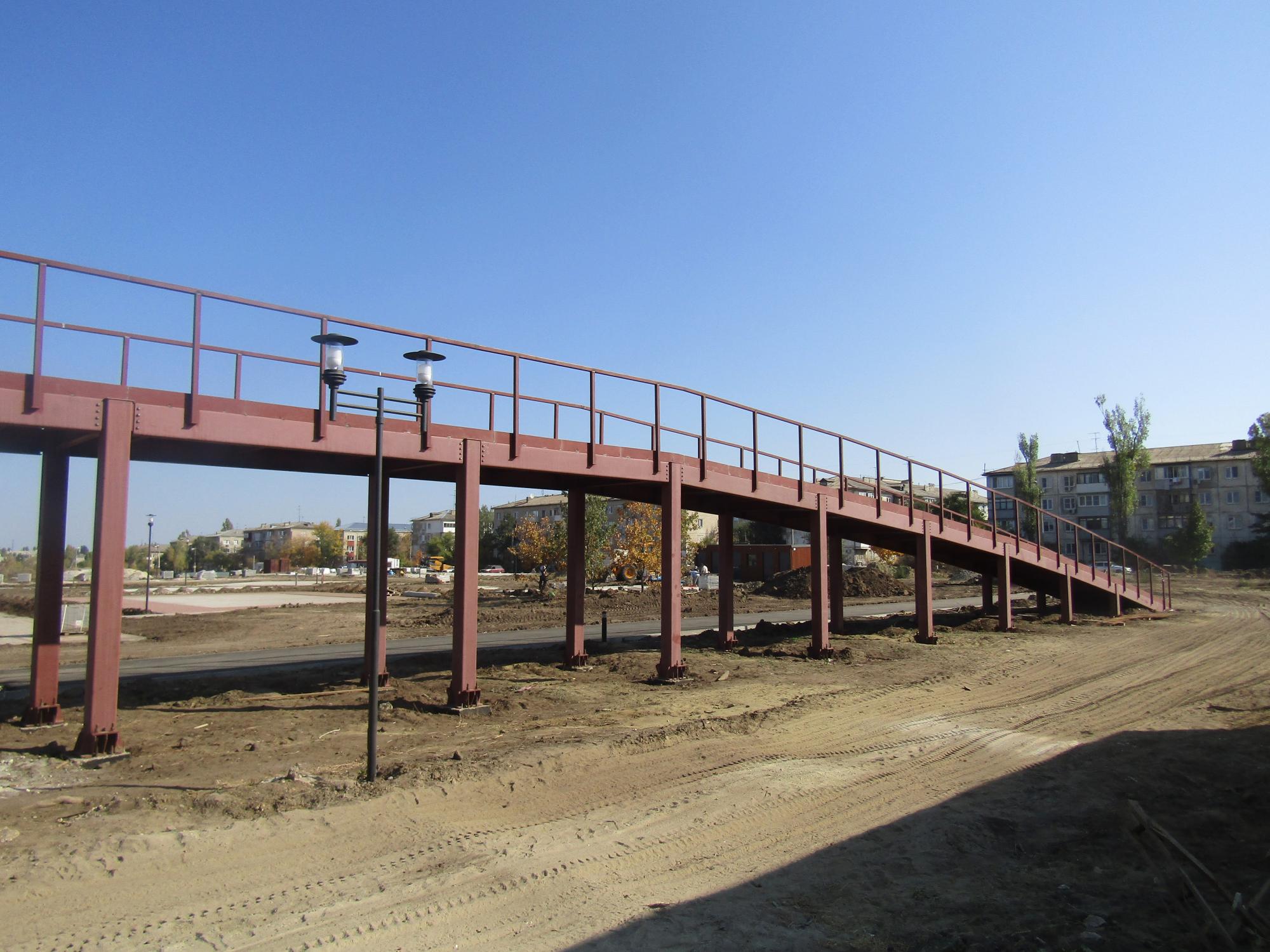 - На сегодняшний день выполнены работы по монтажу конструкций моста длиной почти 80 метров и высотой 4 метра. Кроме того, на 73% завершено обустройство сети велодорожек общей площадью более 3,8 тыс. кв. метров, — сообщили в пресс-службе администрации Волгоградской области.