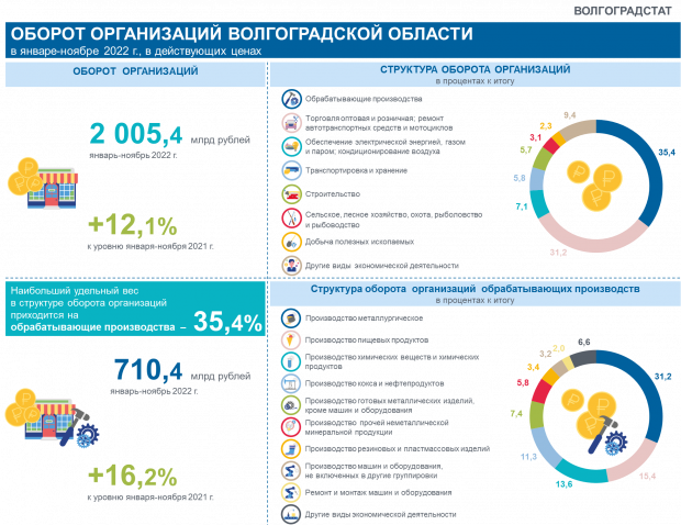 За год оборот организаций Волгоградской области вырос на 12,1%