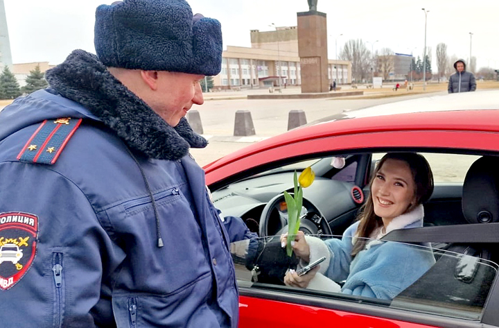 В преддверии Международного женского дня, сотрудники госавтоинспекции города Волжского совместно с активом общественного движения «Помощи на дорогах» провели акцию для женщин-водителей «Цветы для автоледи».
