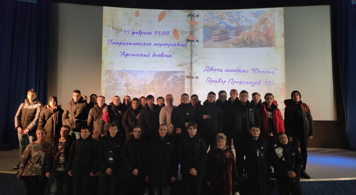 Сохранить память о своих предках и передать её будущим поколениям в силах для каждого из нас.Студенты групп 1-22 МРО-4, 1-22 СРМ-11 отделения «Машиностроение, металлургия» посетили патриотическое мероприятие «Афганский дневник». В группах 1-22 МЧМ-1, 1-22 МК-7 преподаватель истории Китаева О. Н. провела видеолекторий «Афганская война». Преподаватель физической культуры Чукамбаева М. А. провела классный час «Афганский излом» для групп 1-22 ОМД-6, 1-22 СП-6.