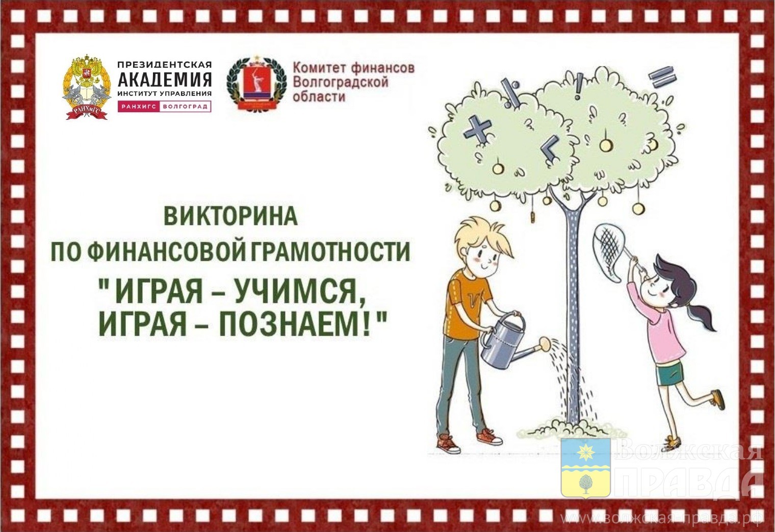 В рамках реализации постановления Администрации Волгоградской области от 23.01.2017 № 10-п «Об утверждении государственной программы Волгоградской области «Управление государственными финансами Волгоградской области» Комитет финансов Волгоградской области в сотрудничестве с Волгоградским институтом управления – филиалом РАНХиГС приглашает учащихся 10-11 классов к участию в Викторине по финансовой грамотности «Играя – учимся, играя – познаем!».