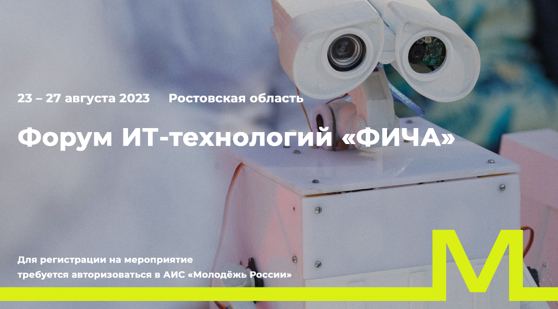 С 23 по 27 августа 2023 года на территории Ростовской области пройдёт Всероссийский молодёжный форум ИТ-технологий «ФИЧА».