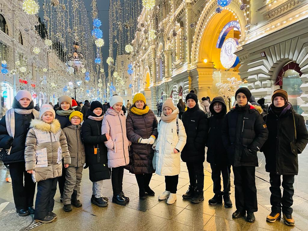 В канун Старого Нового года ребята со своими педагогами и родителями посетили исторические места в столице нашей Родины.Совершили увлекательное путешествие на главную Красную Площадь Москвы, побывали на Воробьёвых горах, полюбовались небоскребами Москва — Сити, прогулялись по Новогодней Никольской улице, посетили музей Экспериментаниум, Театр Сатиры…