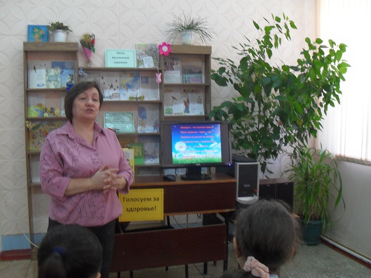 7 апреля 2023 года в библиотеке-филиале №4 МКУК ЦГБС для учащихся 4 «Б» класса МБОУ СШ № 5 прошел урок здоровья: «Голосуем за здоровье» ,