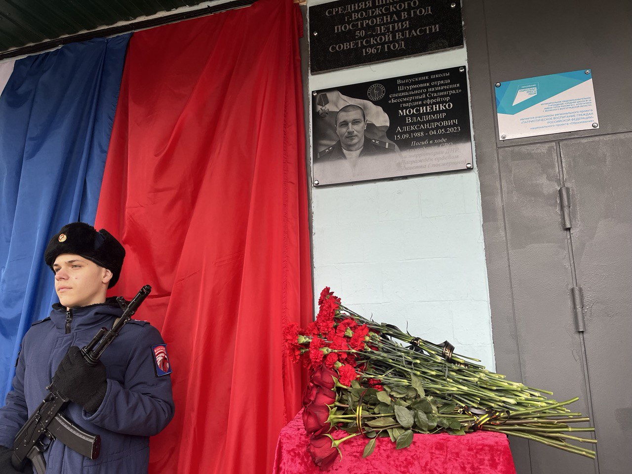 В Волжской школе № 20 состоялось открытие мемориальной доски в честь Владимира Мосиенко — выпускника школы, участника специальной военной операции.