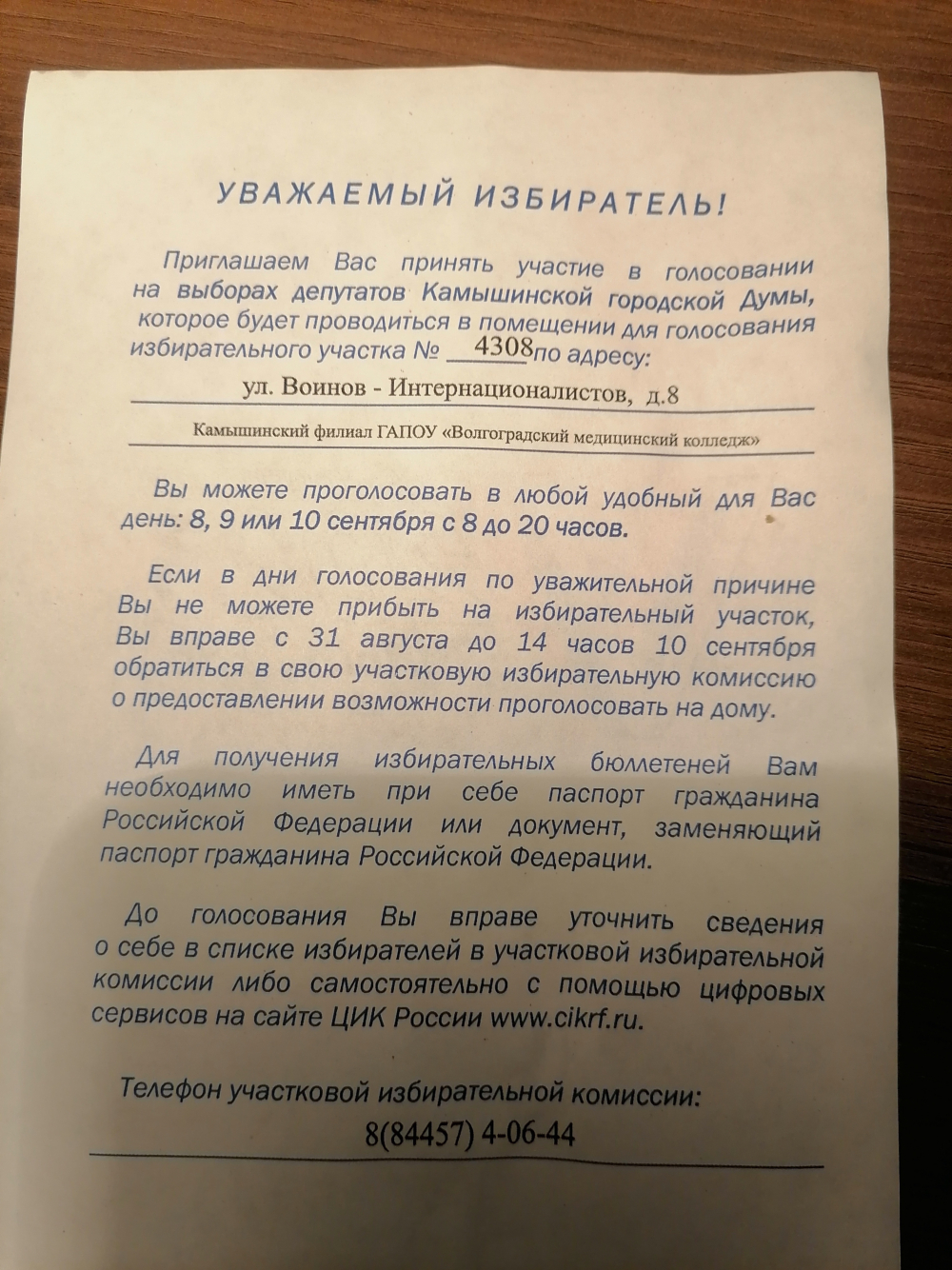 С сегодняшнего дня камышане начали получать в свои почтовые ящики приглашения на выборы, которые пройдут с 8 по 10 сентября.