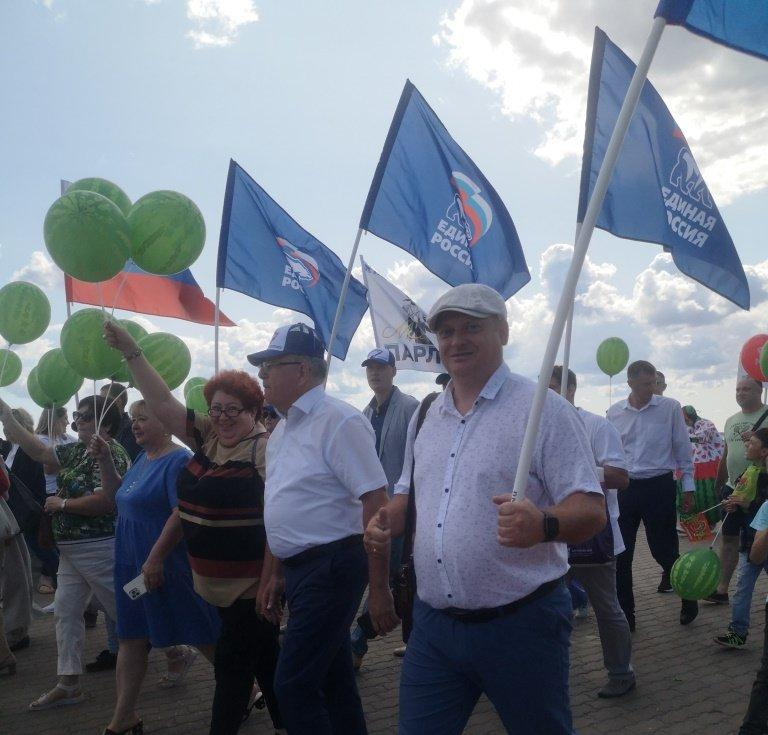 Пресс-служба Камышинской городской думы показала, как депутаты гордумы взяли в руки флаги известной партии и встали в колонну Арбузного фестиваля.