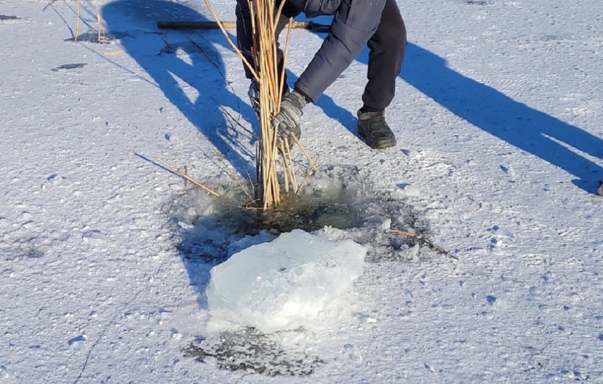 В рамках акции будут оборудованы майнами более 40 прудов и озер. Для того, чтобы лунки не промерзали быстро, в них помещают камыш.
