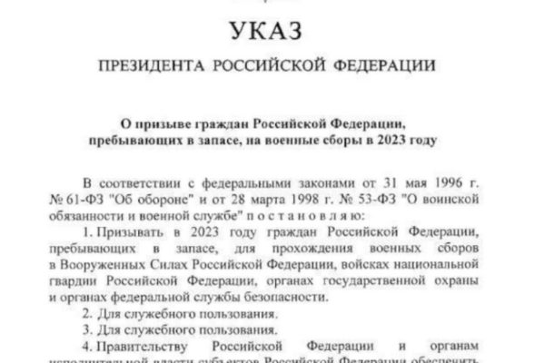 Владимир Путин подписал указ о призыве находящихся в запасе россиян на военные сборы в 2023 году