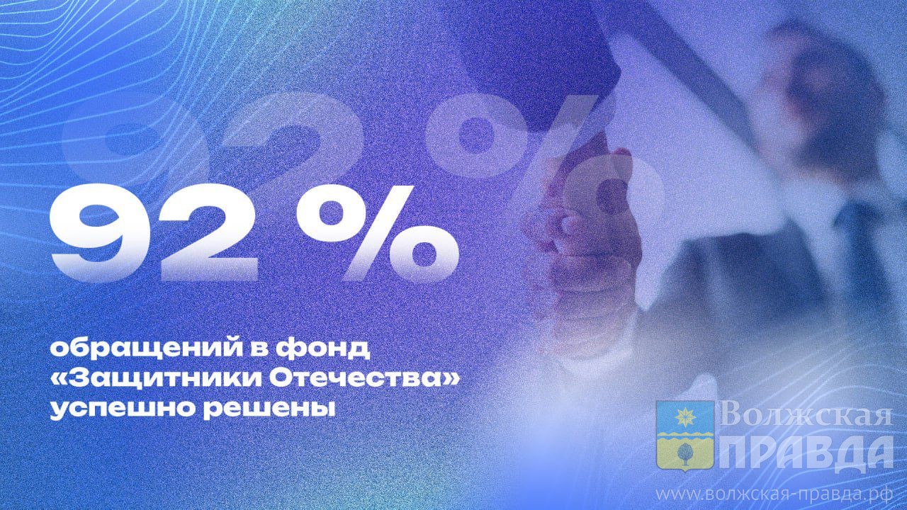 92 % обращений в фонд «Защитники Отечества» успешно решены