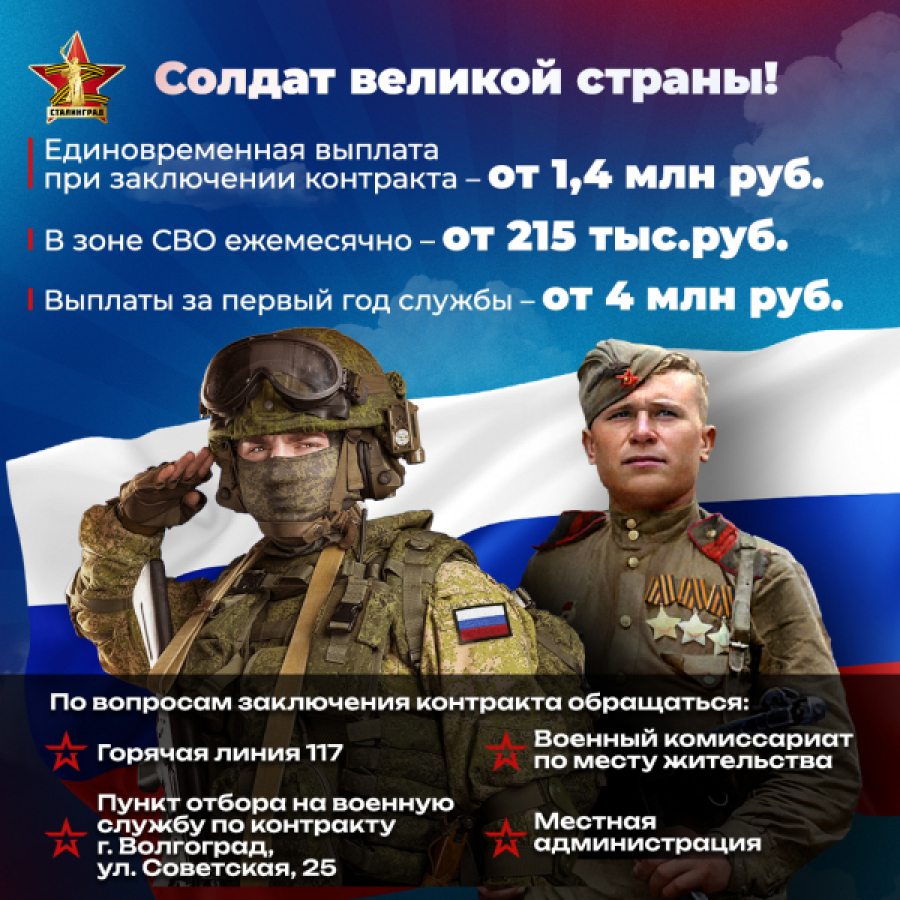 Подробности на сайте службапоконтракту.рф или по телефону горячей линии 117.