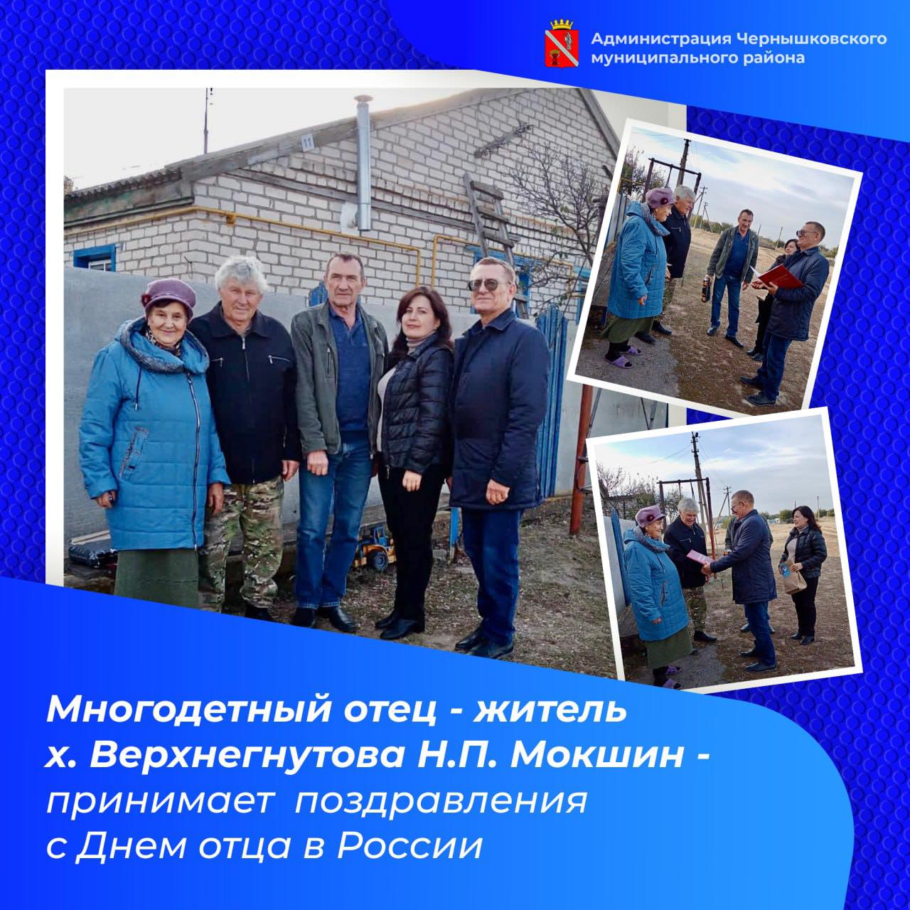 Накануне праздника День отца в России поздравления принимал многодетный отец - житель х. Верхнегнутова Н.П. Мокшин.
