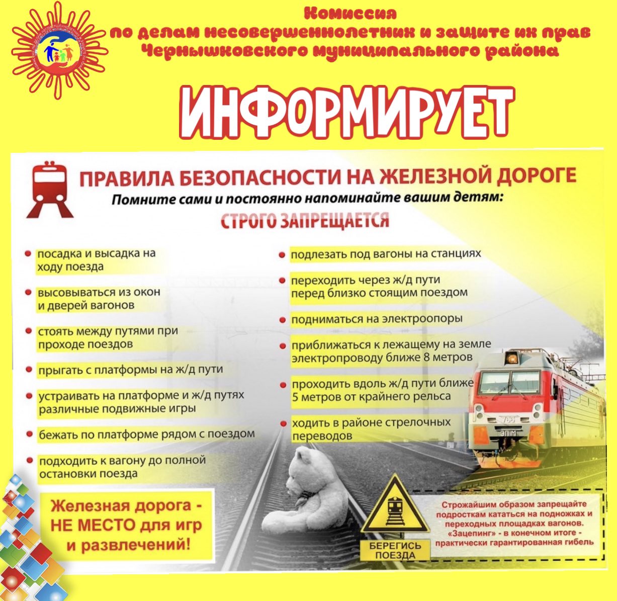 Уважаемые родители! Комиссия по делам несовершеннолетних и защите их прав Чернышковского района обращает особое внимание на разъяснение детям правил нахождения на железной дороге!