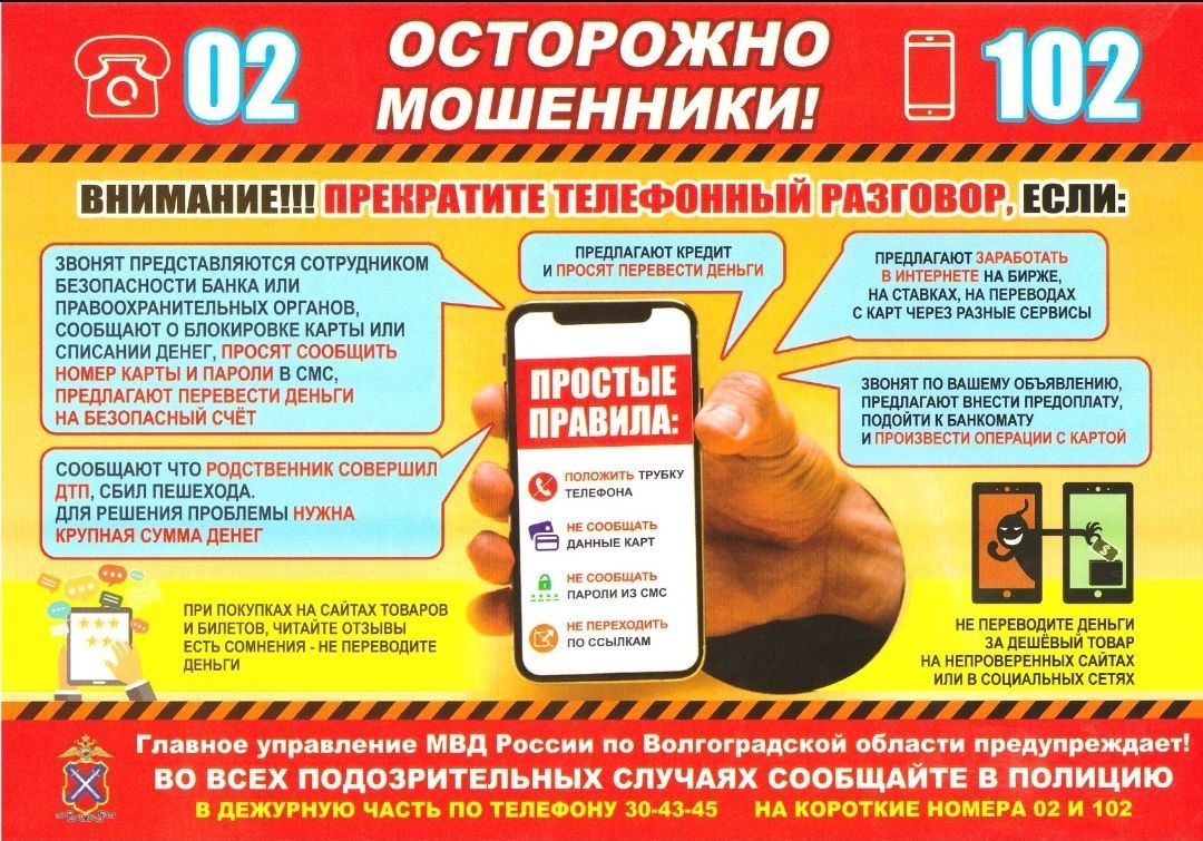 Уважаемые граждане! Обращаем внимание, что телефонные мошенники всё чаще представляются сотрудниками силовых структур РФ (полиции, Росгвардии, ФСБ или МВД), рассчитывая напугать и запутать жертву.