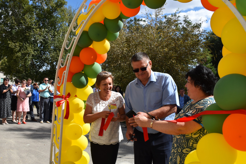 Почетное право разрезать праздничную красную ленту, символизирующую открытие библиотеки, предоставлено В.А. Крылову, Е.В. Дмитриенко и директору МКУК «Чернышковская централизованная библиотечная система» Елене Николаевне Чернышковой.