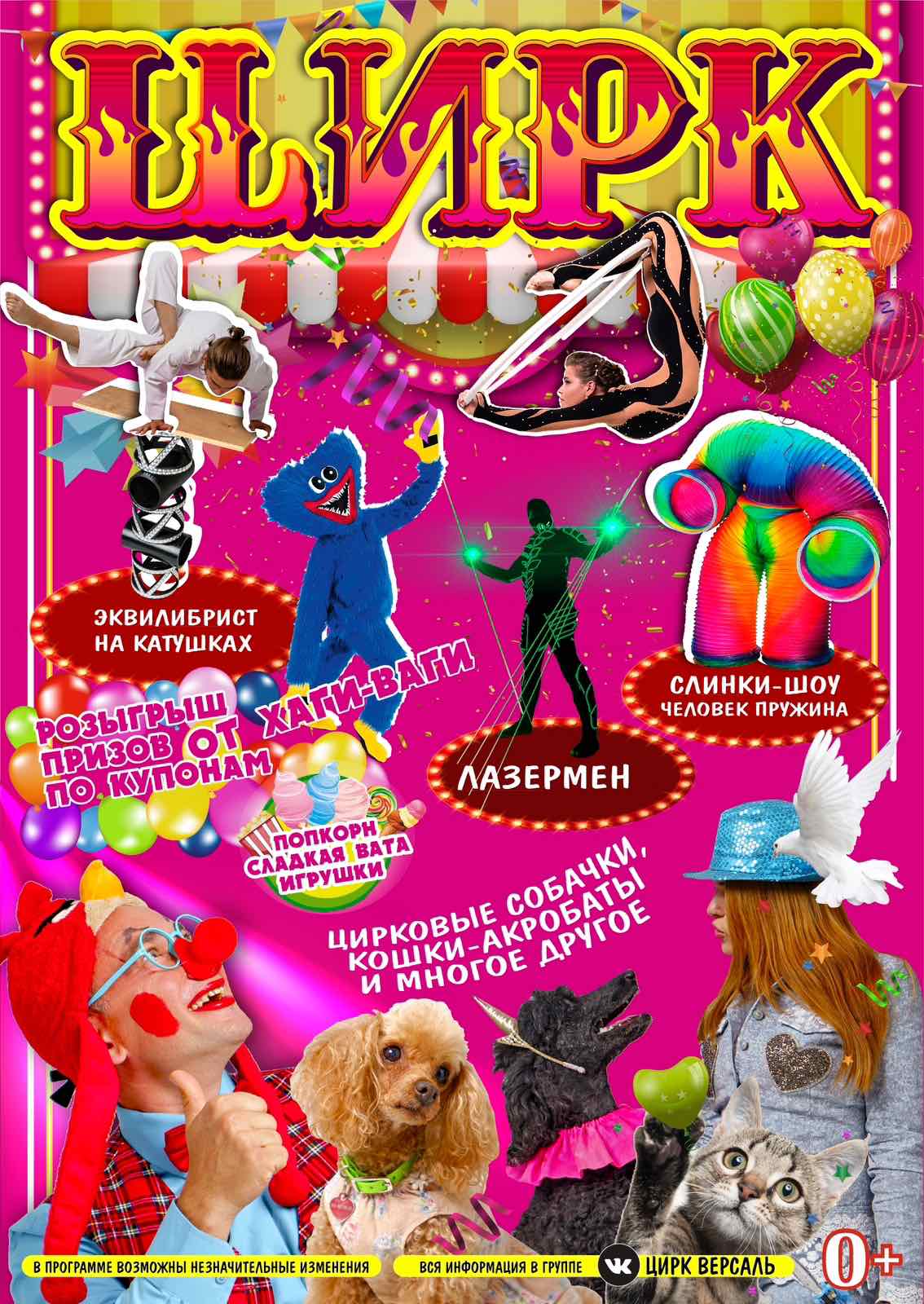В программе представления: дрессированные собачки, кошки - акробаты, голубиная феерия, четырёхметровый питон, жонглер, эквилибрист на катушках, лазермен, слинки шоу, акробаты, гимнасты, экстрим шоу, а также розыгрыш призов.