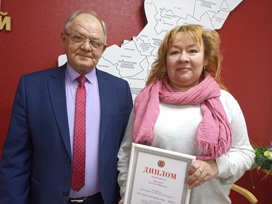 Сегодня на аппаратной планёрке глава района Алексей Самсонов тепло поздравил главного редактора МБУ «Уезд» Наталью Хрипкову, которая стала победителем Волгоградского областного конкурса «Лучший менеджер года – 2021»