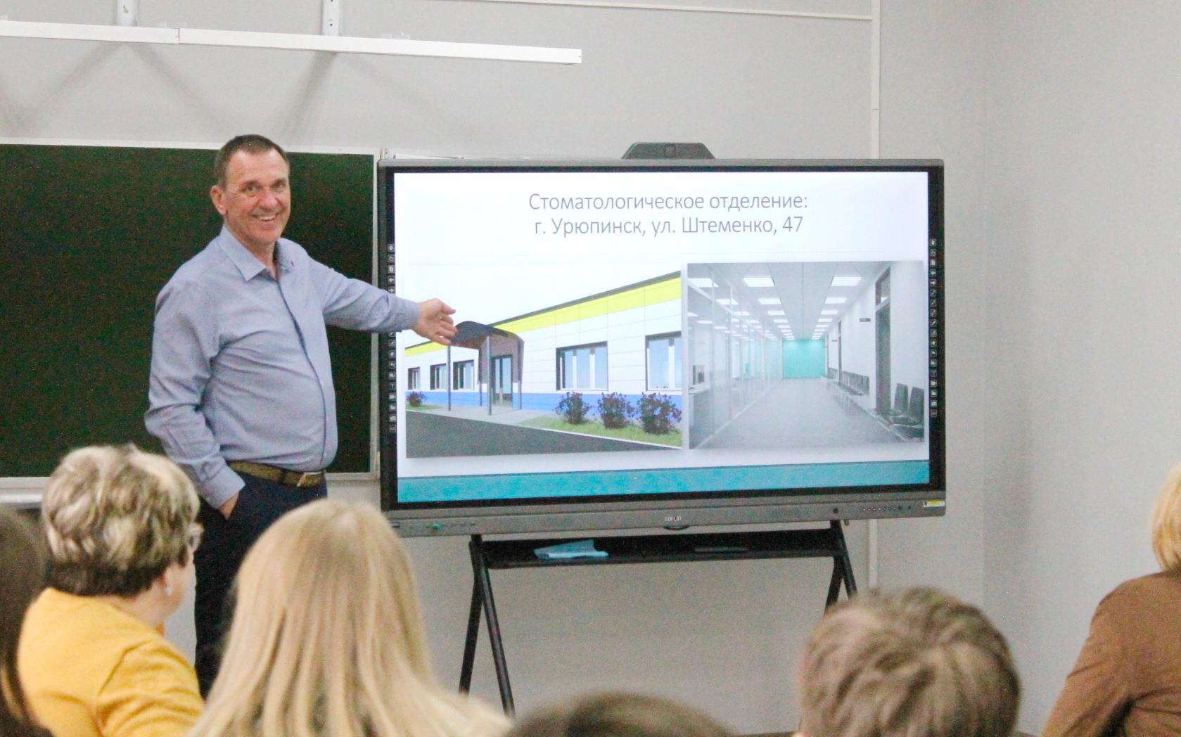 18 апреля на базе средней школы №3 состоялась встреча старшеклассников школ города с главным врачом ГАУЗ «Стоматологическая поликлиника №8» г. Волгограда Гаценко Сергеем Михайловичем. В ходе профориентационной беседы Сергей Михайлович рассказал о модернизации бывшей муниципальной стоматологической поликлиники, которая теперь является отделением ГАУЗ «Стоматологическая поликлиника №8» и познакомил обучающихся с особенностями профессии врача – стоматолога. Особое внимание главный врач уделил возможности поступления в Волгоградский государственный медицинский университет по договору о целевом обучении.