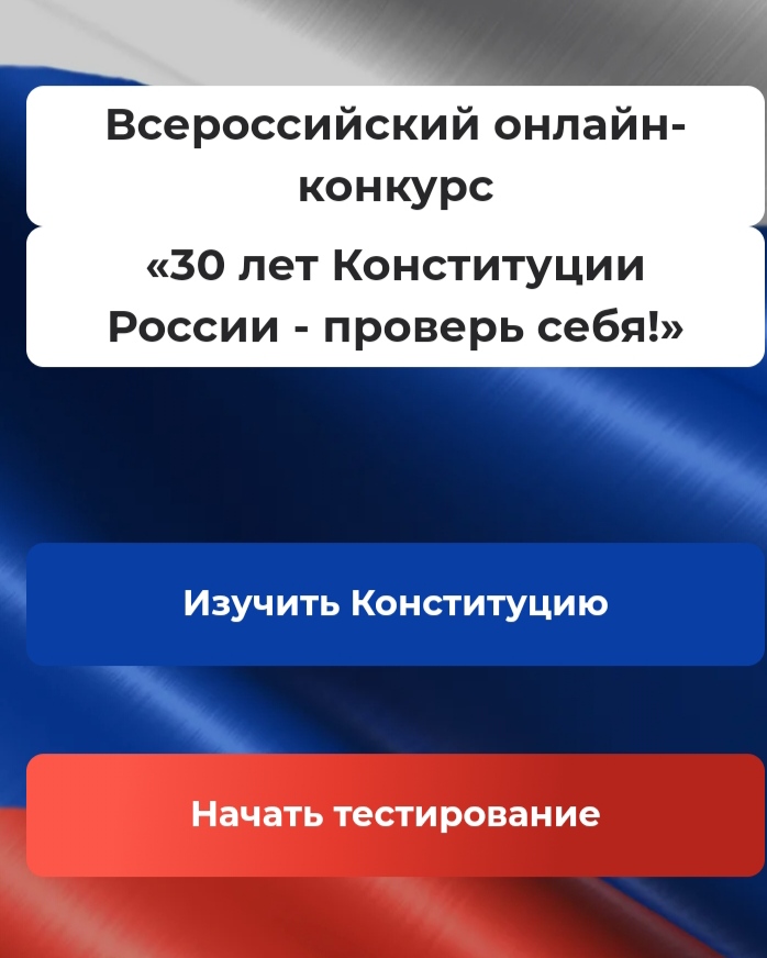 Уважаемые граждане! Конкурс «30 лет Конституции России - проверь себя!» проходит на сайте онлайн.