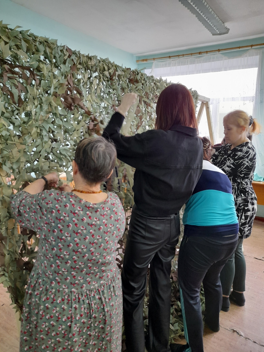С её доставкой снова помогает Анатолий Калашников. Он же установил станок для плетения маскировочных сетей и предоставил рабочий материал, а жители села - пенсионеры, работники дома культуры, детского сада, школы участвуют в их плетении.