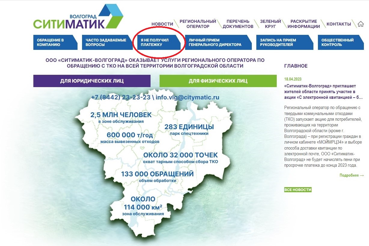 1. Для подачи обращения о неполучении платежного документа потребителю необходимо зайти на официальный сайт ООО «Ситиматик-Волгоград»: https://34.citymatic.ru ;