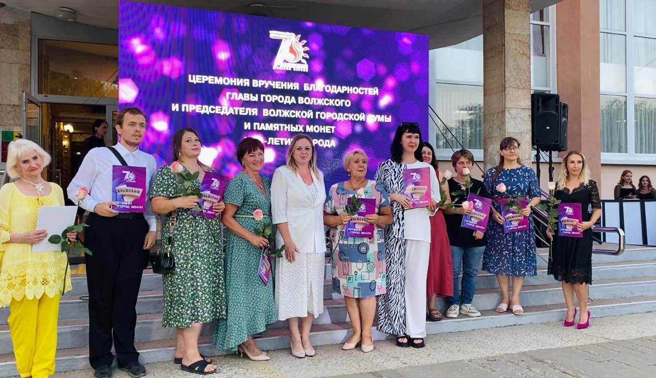 Сотрудникам детских садов, педагогам школ, соцработникам, общественникам руководители города вручили благодарности главы Волжского и председателя городской Думы, а также памятные монеты, которые были специально выпущены к юбилею Волжского. В преддверии Дня города такие монеты, отчеканенные тиражом 1000 экземпляров, вручаются волжанам, которые вносят свой вклад в развитие города и его процветание.