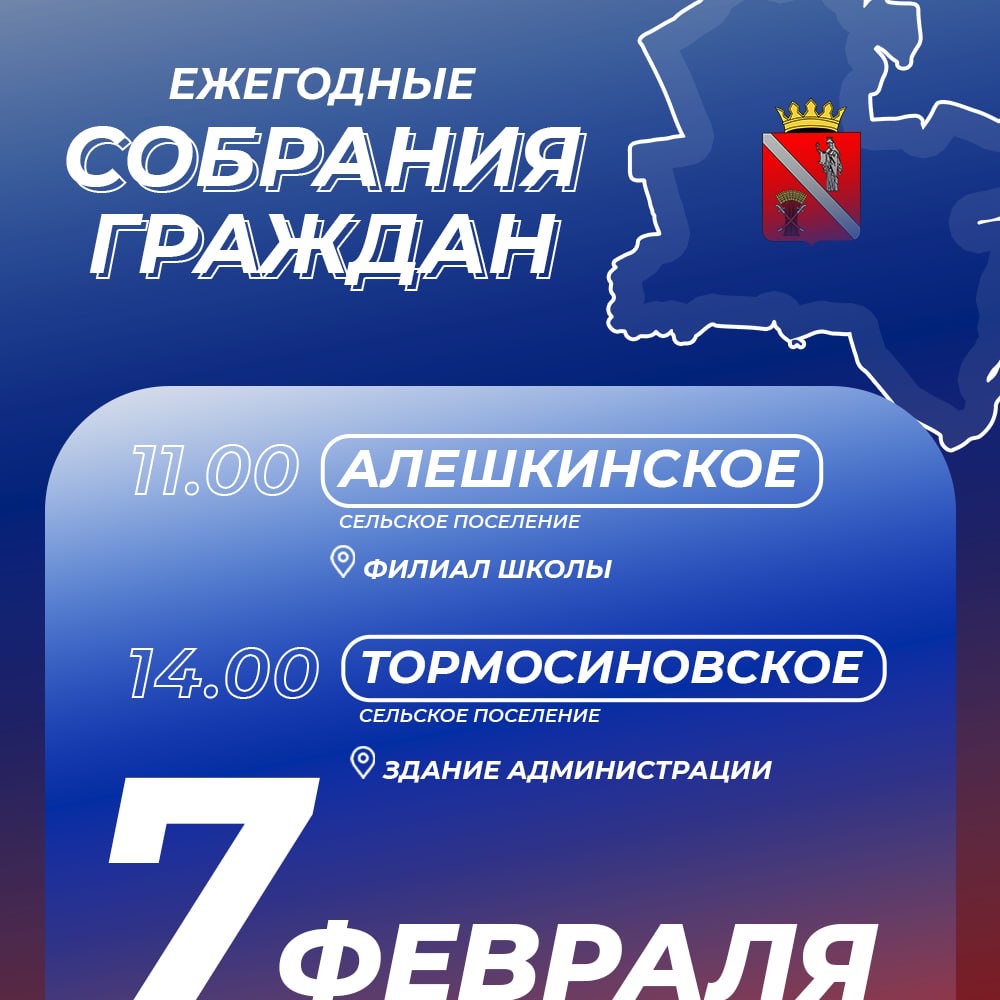 Завтра, 7 февраля, собрания граждан состоятся в Алешкинском и Тормосиновском сельских поселениях.