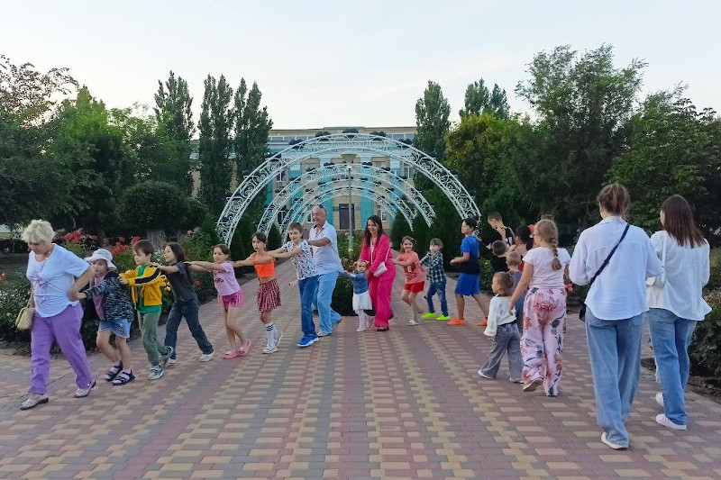 Завершилось мероприятие традиционной игрой «Паровозик», где все присутствовавшие, называя имя, становились вагончиками в большом веселом поезде.