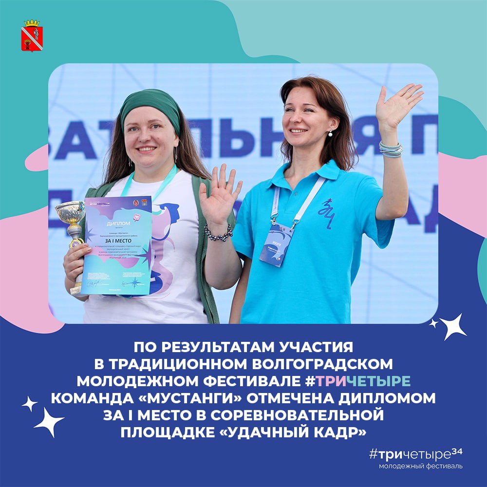 Команда Чернышковского района «Мустанги», в состав которой вошли наши земляки - представители молодежи Роза Парджанадзе, Марина Попова, Иван Кривошеев, Оксана Пяткина, Светлана Яцун, Юрий Казанков, Елена Малашина, Юлия Шимкив, Полина Камалединова, приняла участие в традиционном молодежном фестивале #ТриЧетыре, прошедшем в городе-герое Волгограде.