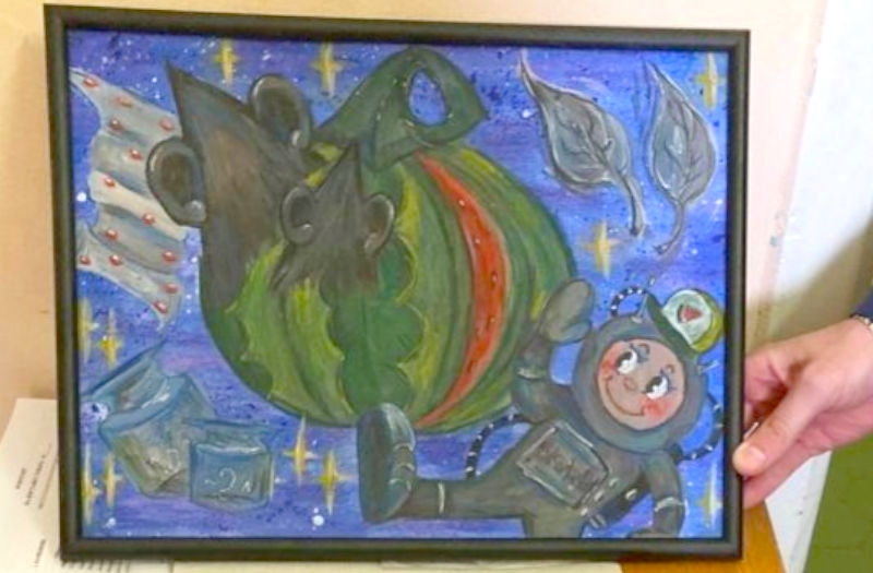 Публика подолгу останавливается у произведения молодой художницы Oles Dori и из Нижнего Новгорода. Дело в том, что это — целый образ. Здесь горы Уши обрели реальные уши, а возвышаются они на... арбузе! Рядом — как дань истории города запечатлены стеклянные банки и текстиль камышинского производства. И есть даже космонавт — отсыл к Почетному гражданину Камышина Юрию Малышеву.