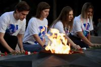 Свыше полутора тысяч участников молодежного фестиваля #ТриЧетыре, в том числе прибывшие в Волгоград из других регионов, включая новые территории России, приняли участие в акции, посвященной Дню памяти и скорби.