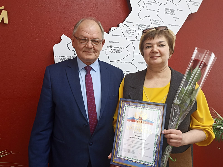 «За активное содействие развитию местного самоуправления» глава Камышинского района Алексей Самсонов вручил главному специалисту администрации Таловского поселения Анне Протасовой и ведущему специалисту администрации Белогорского поселения Наталье Хариной (на фото).