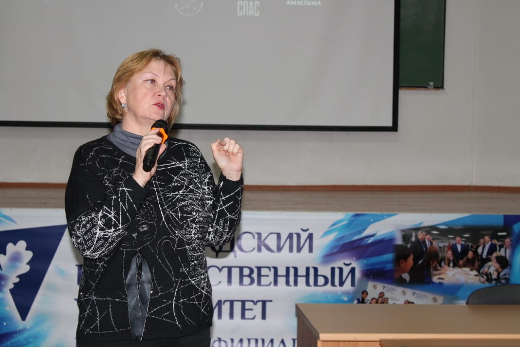 Перед студентами выступила депутат гордумы, помощник уполномоченного по правам ребенка Волгоградской области по городу Волжскому, председатель «Союза женщин» Светлана Винокурова. Она обратилась к студентам с теплыми словами и пожеланиями, рассказав о важности семьи в жизни каждого человека, о ценности такого момента, как рождение детей.