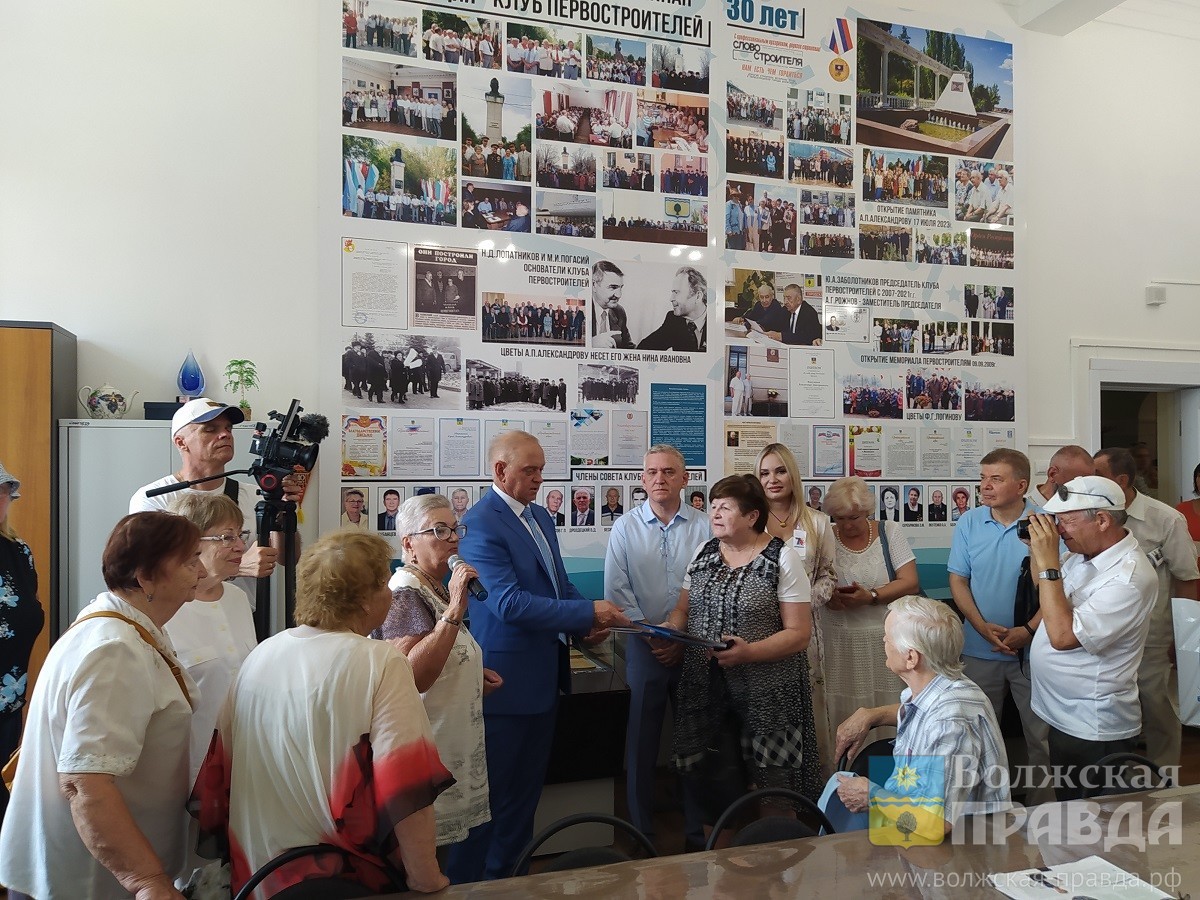 Первыми посетителями музея стали первостроителиПервыми посетителями музея первостроителей, естественно, стали ветераны города. Уже 30 лет они еженедельно собираются в клубе, активно участвуют в муниципальной жизни и благоустройстве города, являются пионерами многих начинаний. Так, по инициативе ветеранов у Волжского появился памятники Логинову и Александрову, мемориал первостроителям.