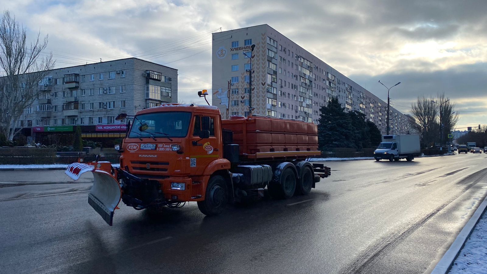 В ночь с 15 на 16 января в Волжском с начала выпадения осадков на городские магистрали были выведены четыре машины «КАМАЗ» с песко-соляной смесью.
