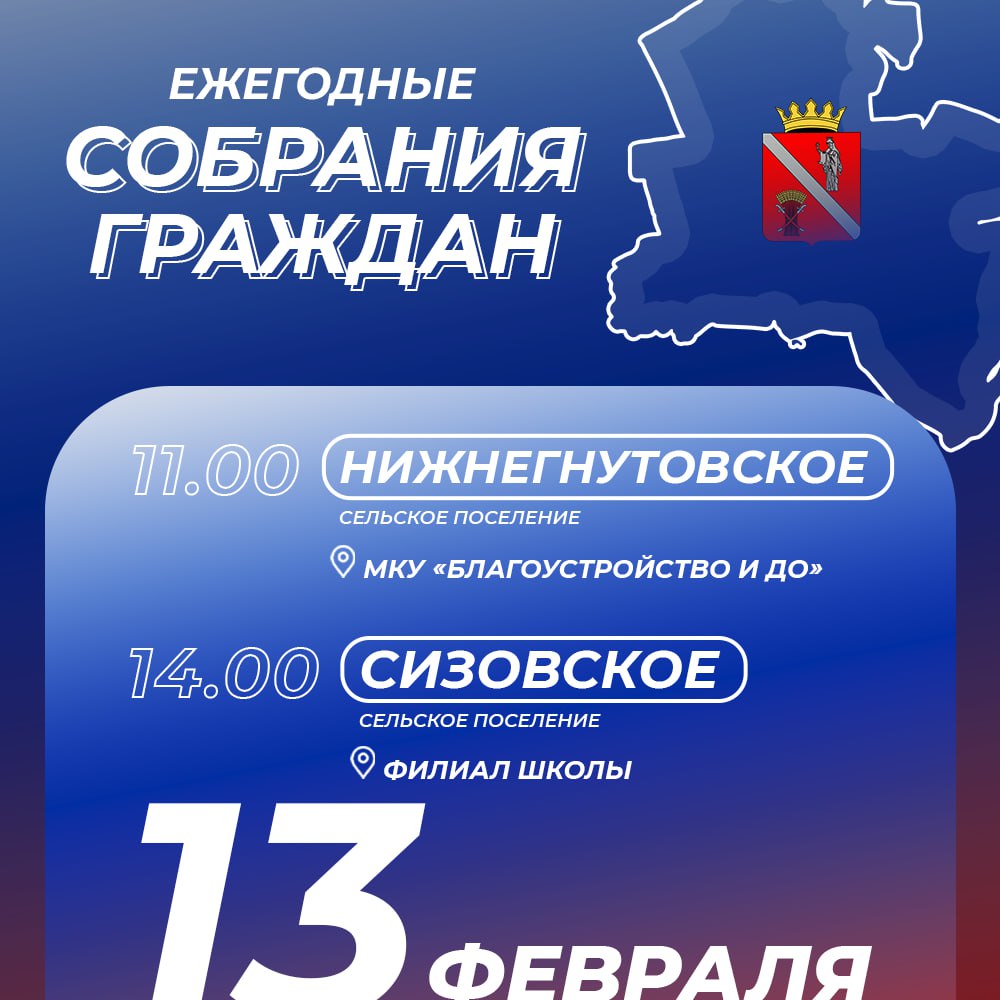 Во вторник, 13 февраля, собрания граждан состоятся в Нижнегнутовском и Сизовском сельских поселениях.