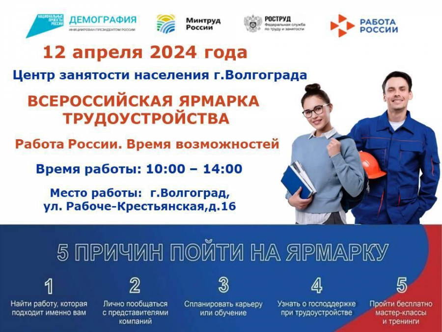 Жители региона смогут найти работу на Всероссийской ярмарке трудоустройства.