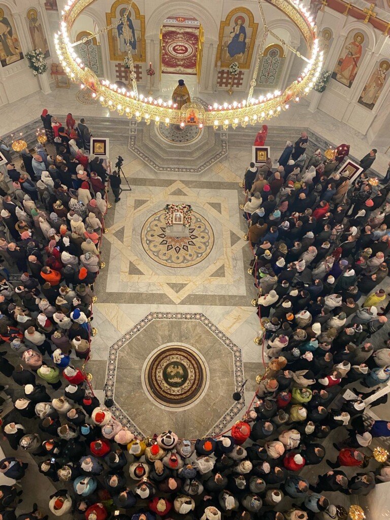 Храм заполнился радостным пасхальным «Христос Воскресе! Воистину Воскресе Христос» — святыми словами, которые звучали в течение всей службы и будут звучать теперь вместо приветствия до праздника Вознесения.