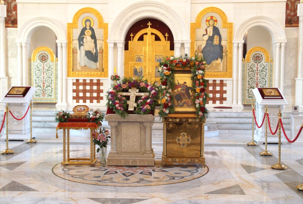 Святыня пребывала в соборе 25 по 28 сентября. Ежедневно перед мощами покровителя Русского воинства совершались молебны с чтением акафиста.