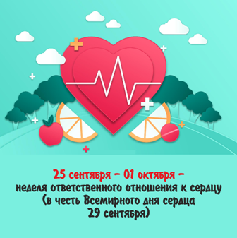 25 сентября — 01 октября 2023 года — Неделя ответственного отношения к сердцу (в честь Всемирного дня сердца 29 сентября)