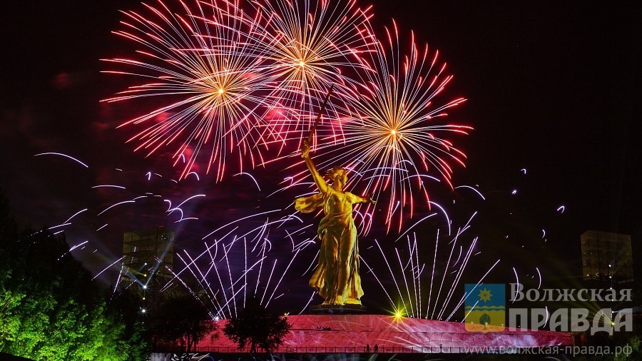 Салют на Мамаевом кургане.Напомним, дни 1 и 2 февраля в Волгоградской области объявлены выходными.