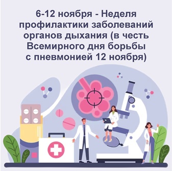 06-12 ноября 2023 года — Неделя профилактики заболеваний органов дыхания (в честь Всемирного дня борьбы с пневмонией)