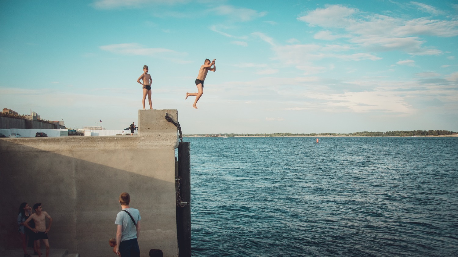 Опасный инцидент, который вполне мог стоить жизни волгоградскому школьнику, случился в акватории Волги напротив улицы Одесская. Группа подростков освежались в воде, в то время как их сверстники ныряли с плит.